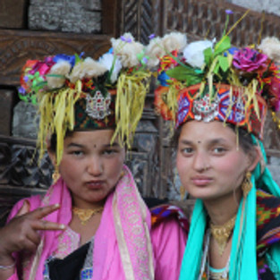 הבנות הרווקות עטו היום תלבושות מסורתיות: כובעי פרחים צבעוניים, שמלות רקומות ביד, תכשיטים מפוארים על הפנים, הידיים והצמות וקישוטי מנדי, חינה, על כף היד. הן יוצרות שורות-שורות שמתחברות למעגל גדול סביב פיסת דשא, מקודשת כמובן, ומתחילות לרקוד ולשיר.